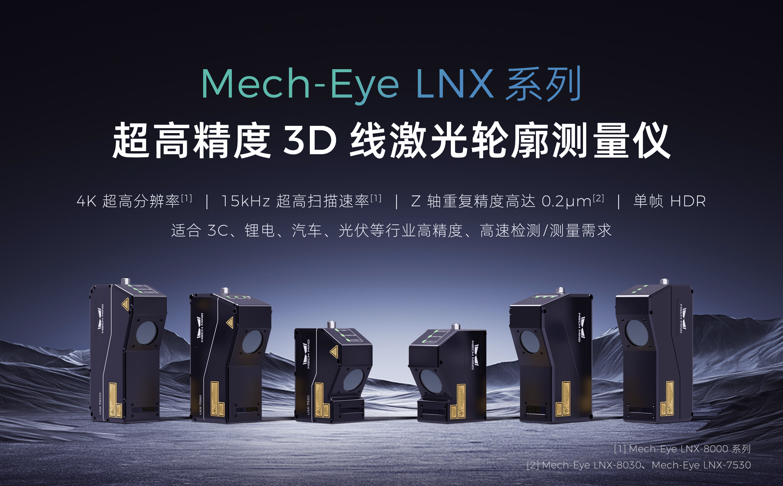 Mech-Eye LNX系列3D線激光輪廓測量儀,4K超高分辨率,15kHz超高掃描速率,可對物體細微特征高速、高質量成像。適用于3C、鋰電、汽車、光伏等行業各類高精度、高速檢測/測量需求。